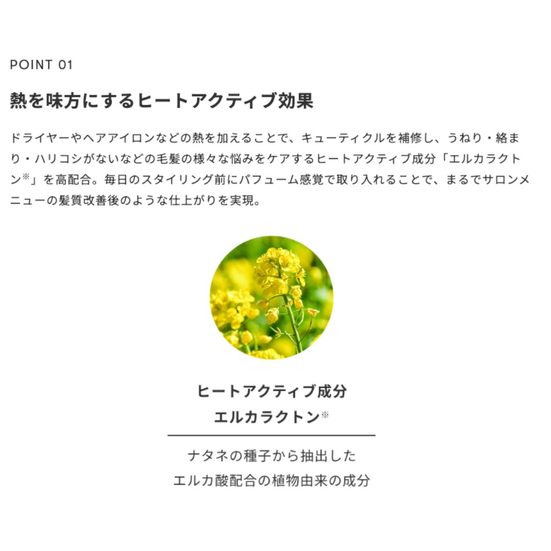 香りを纏いながら、熱の力でキューティクルを補修し、髪一本一本を、しなやかで、なめらかな質感へと導く新しいパフュームオイルです。