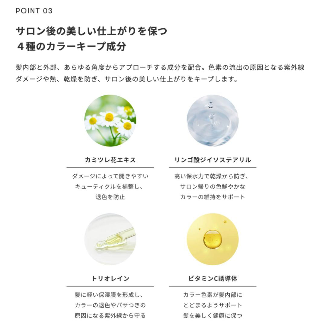 ・サロン後の美しい仕上がりを保つカラーキープ効果
