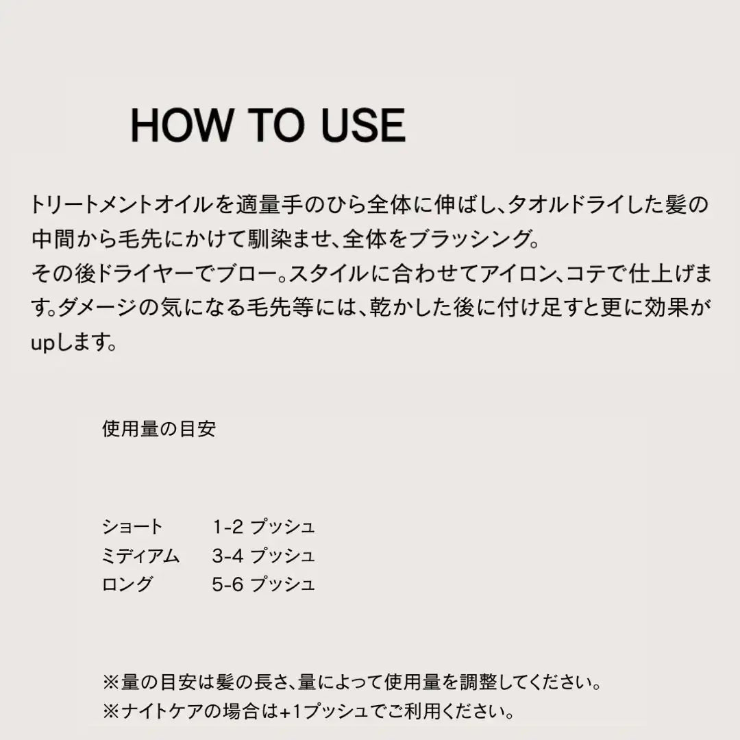 ※量の目安は髪の長さ、量によって使用量を調整してください。